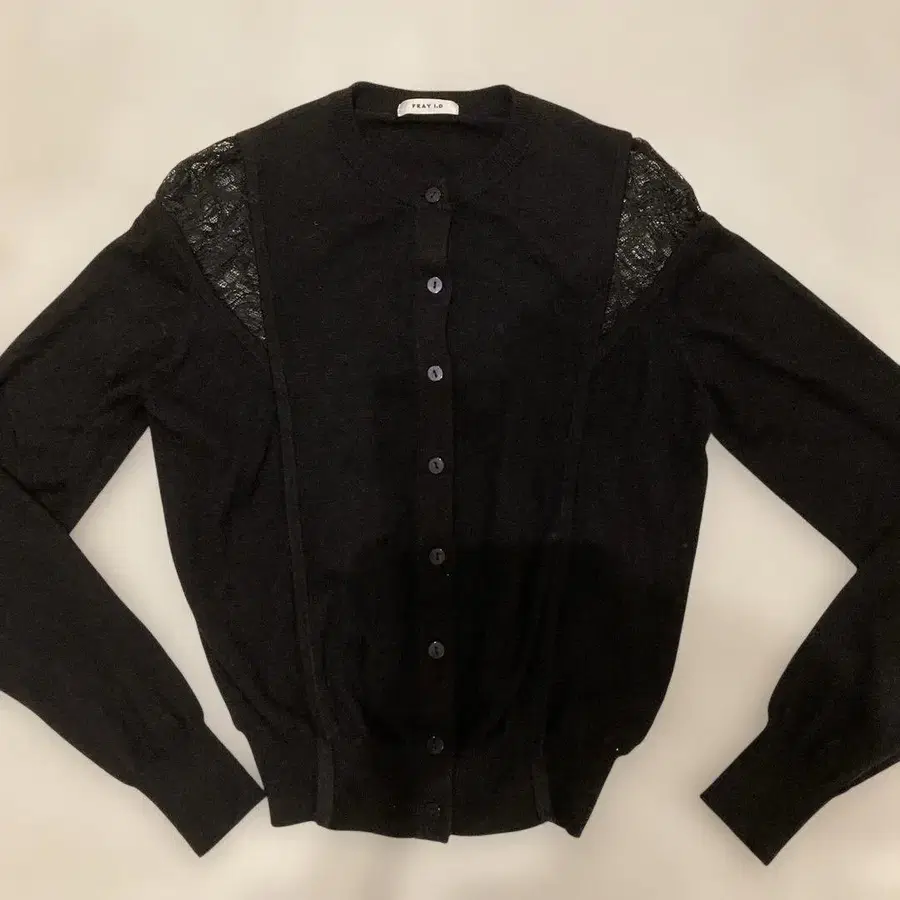 프레이 아이디 니트 가디건 레이스 시스루 심플 블랙