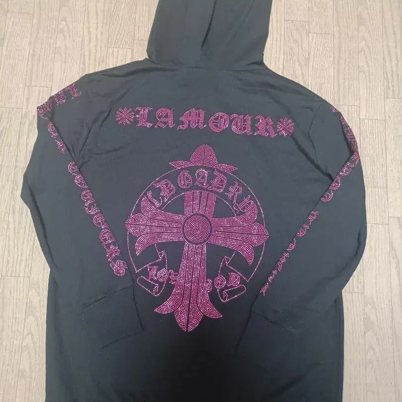 새상품 LAMOUR 핑크 스터드 후드티 큐빅 블랙 갸루