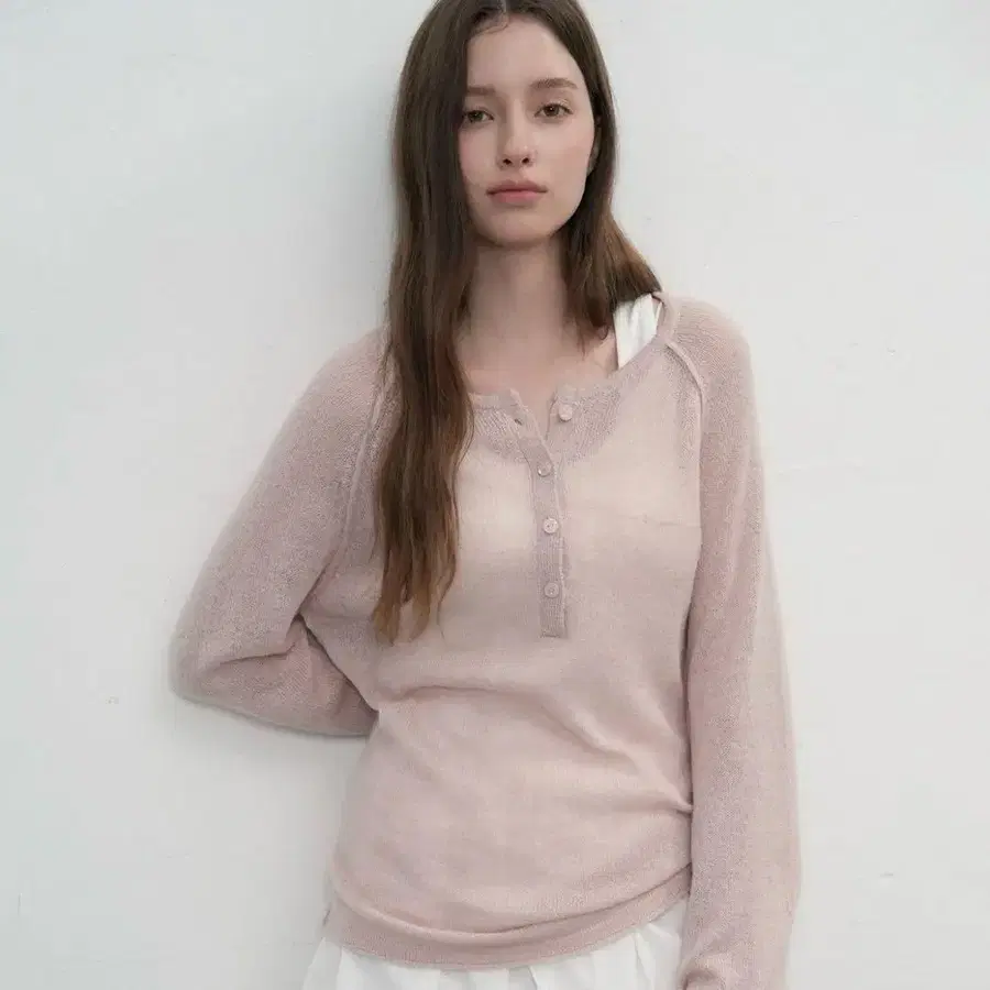 General idea 울 시스루 헨리넥 풀오버 긴팔 사이즈 M