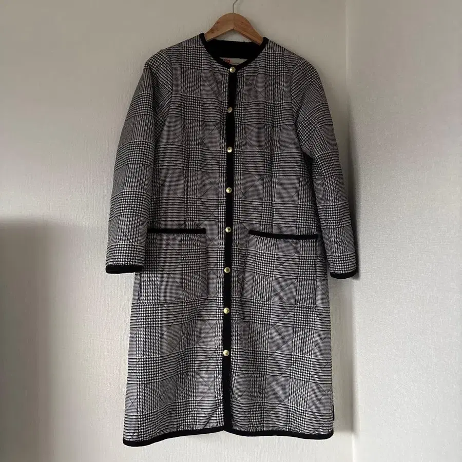 트래디셔널 웨더웨어 퀼팅 코트 하운드투스 체크 패턴