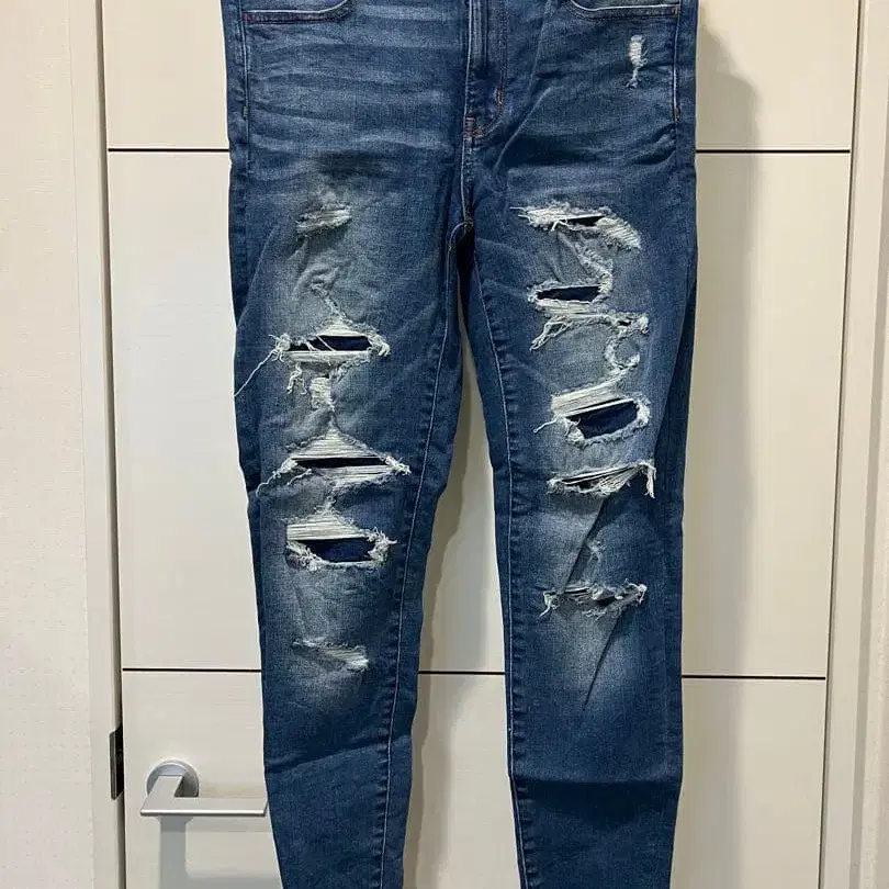 AMERICAN EAGLE 데미지 가공 스키니 데님 다크 블루