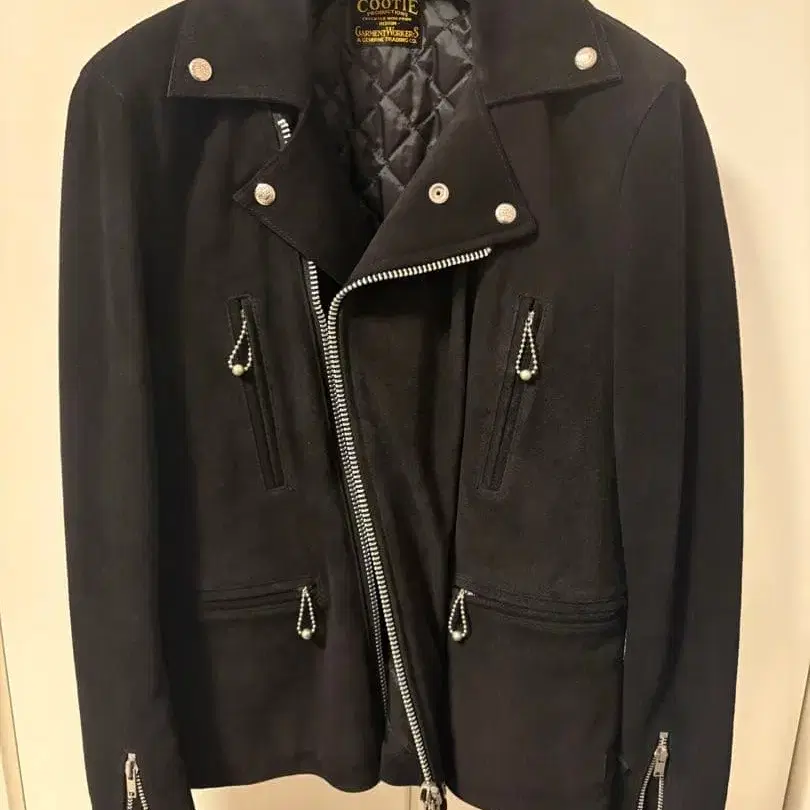 자동 번역되었어요. 원문보기스웨이드 소재의 더블 라이더 자켓, 퀼팅 안감 포함.