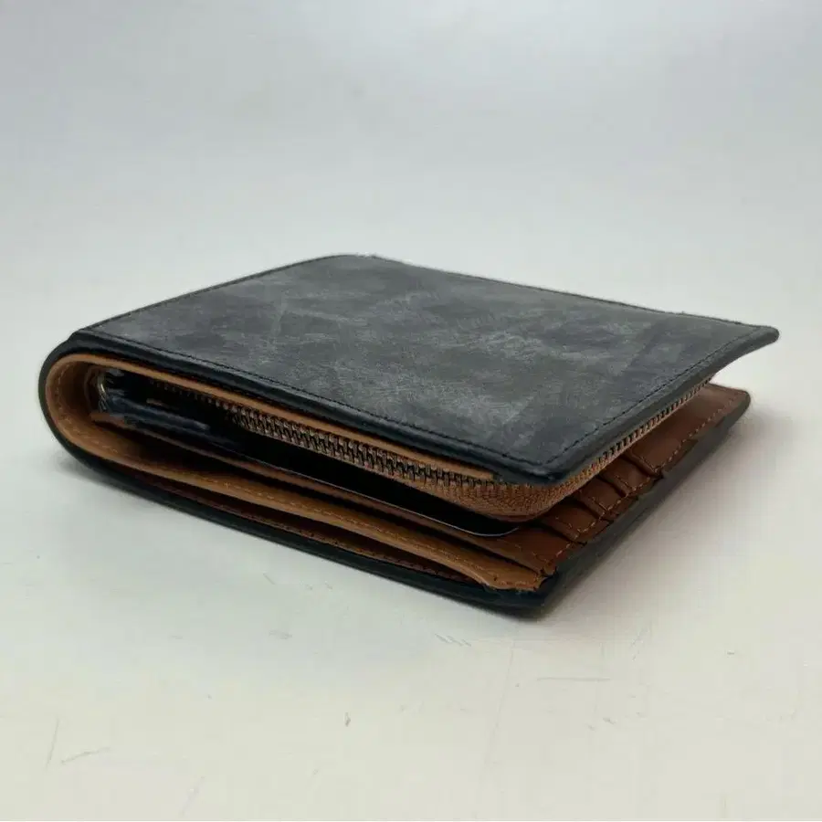 브라운 가죽 접이식 지갑