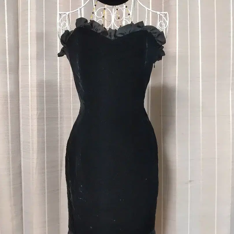 Genet Vivien 9호 블랙 벨벳 드레스 프릴 포함