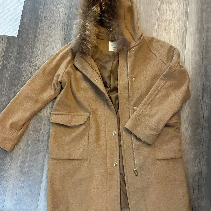FREAK'S STORE 후드 부착 카멜 롱 코트