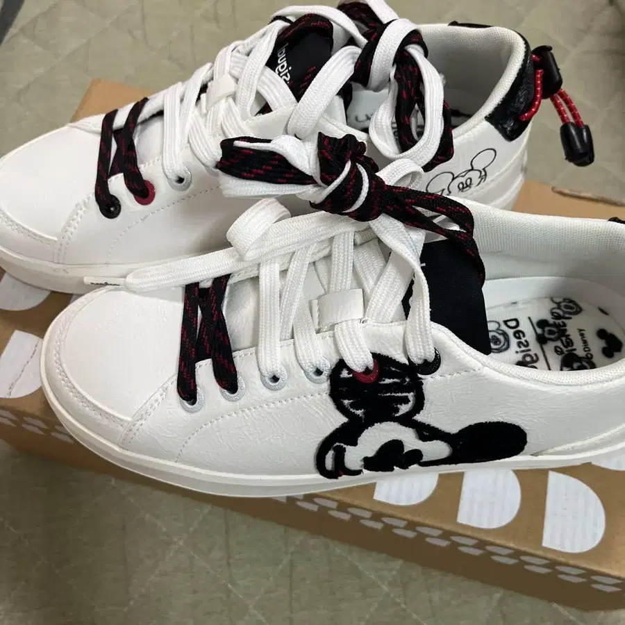 미키 자수 화이트 스니커즈
