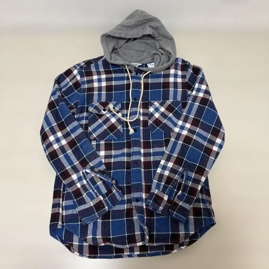 FIVE BROTHER 후드 부착 플란넬 셔츠 블루 계열 사이즈 L