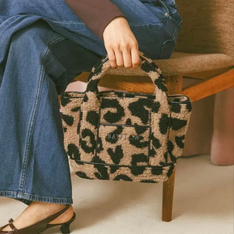 BAYFLOW 레오파드 보아 로고 토트 S