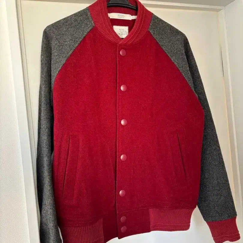 BEAMS LIGHTS 빨간색 그레이 바시티 자켓