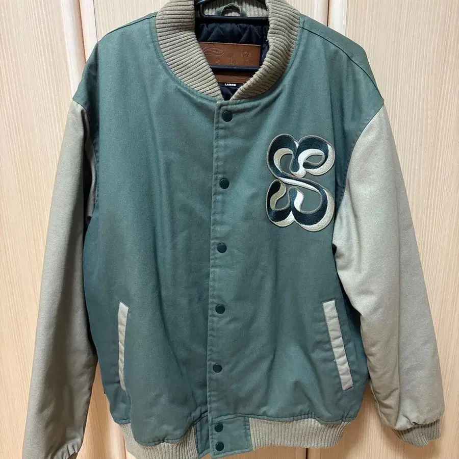 올리브 그린 베이지 바시티 자켓