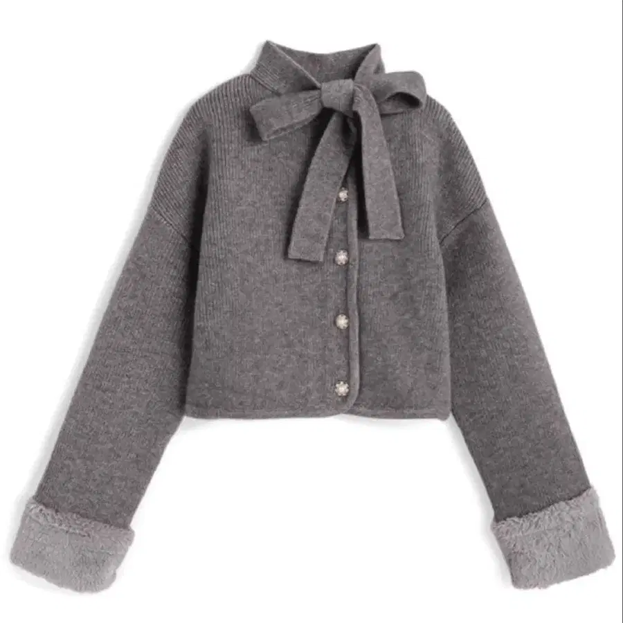 리본 펄 버튼 퍼 니트 가디건 GRL