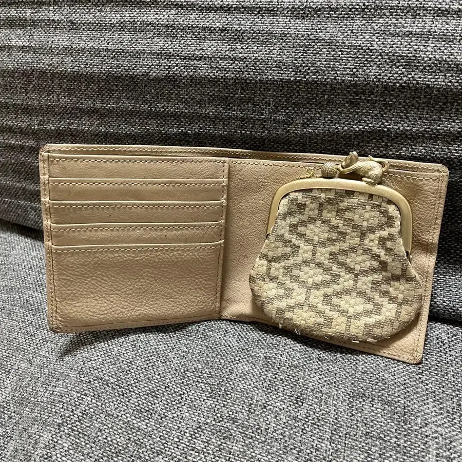 sakurayama 사쿠라야마 가마구치 달린 접이식 지갑 아이보리 고양이