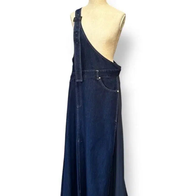 원숄더 데님 롱 스커트 올인원 리메이크 비대칭