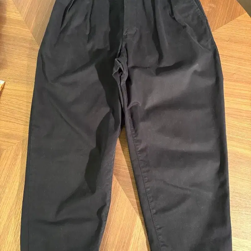 허리와 엉덩이 둘레는 여유를 주면서 밑단으로 갈수록 좁아지는 패턴입니다. 릴랙스한 분위기를 주면서도 깔끔한 인상입니다.