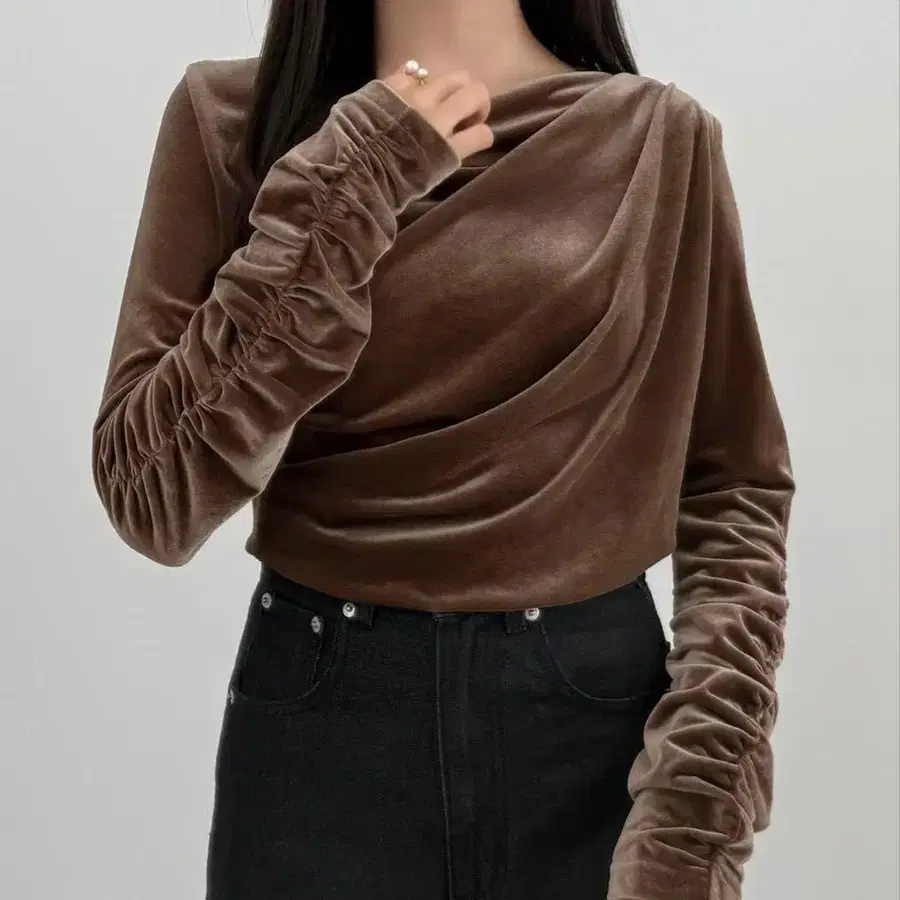 [ NOELA ] 벨로아 드레이프 상의(black)