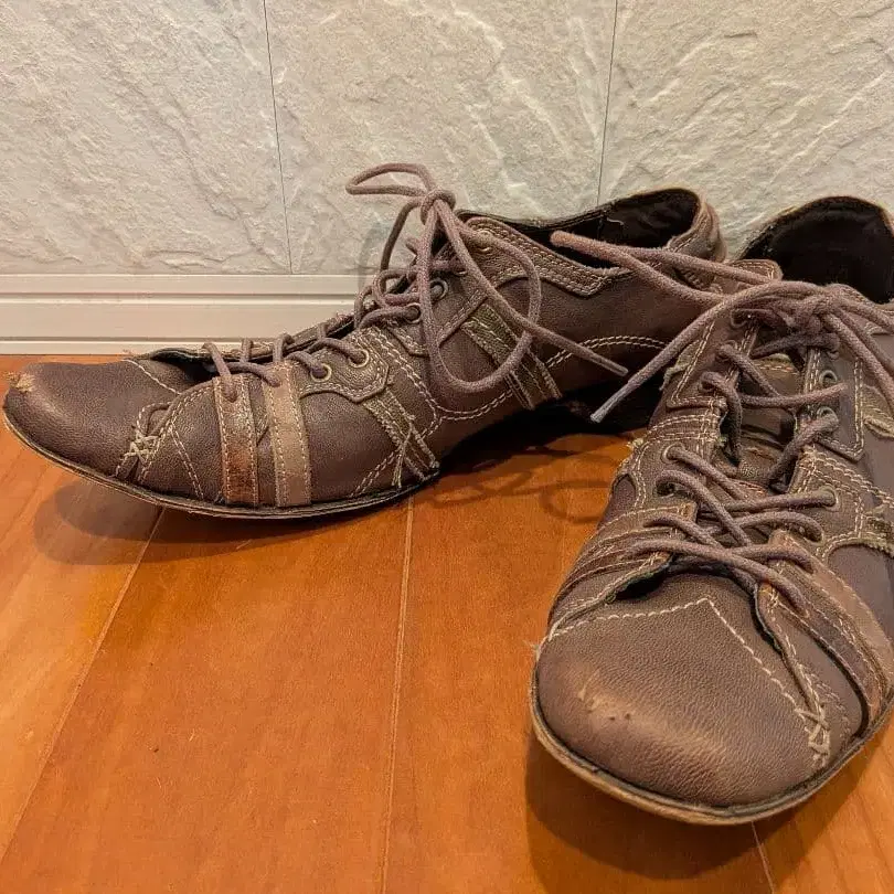 브라운 가죽 스니커즈 레이스업