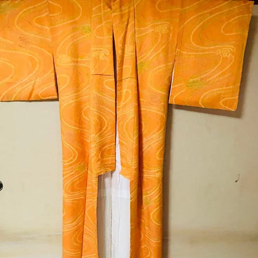 기모노 코몬 춤추는 듯한 아름다운 오렌지 컬러 물결 무늬 레트로