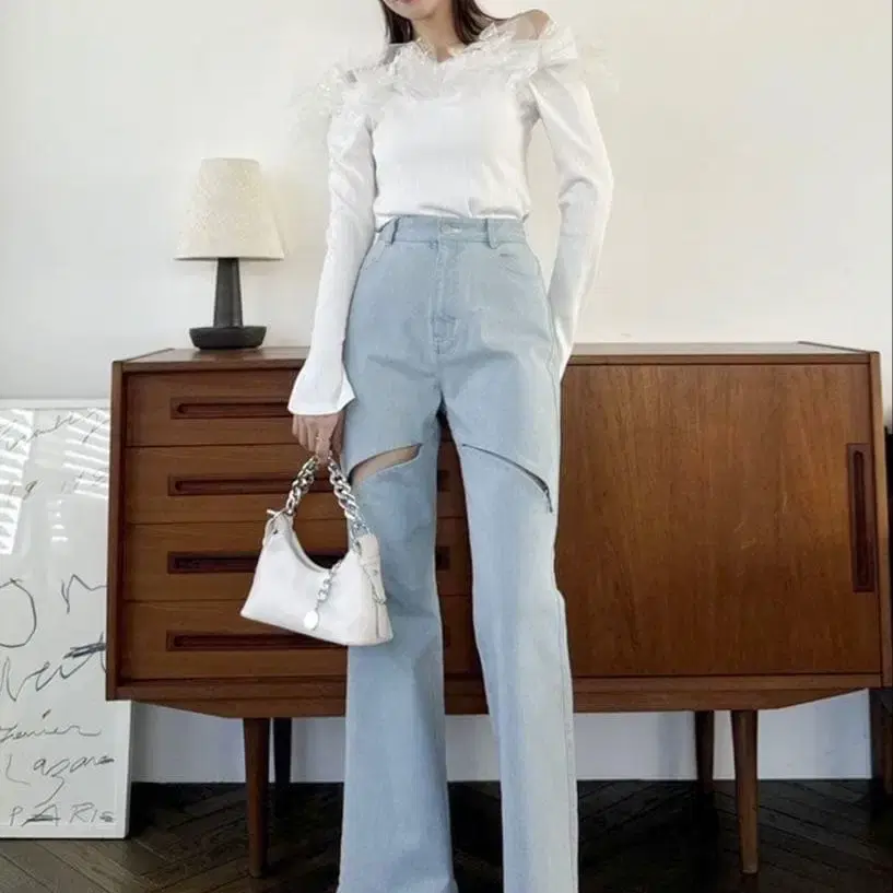 슬릿 플레어 데님 팬츠 블루 S 사이즈