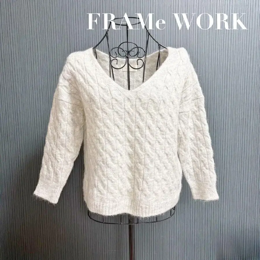 프레임 워크 V넥 케이블 짜임 니트 그레이 울 모헤어