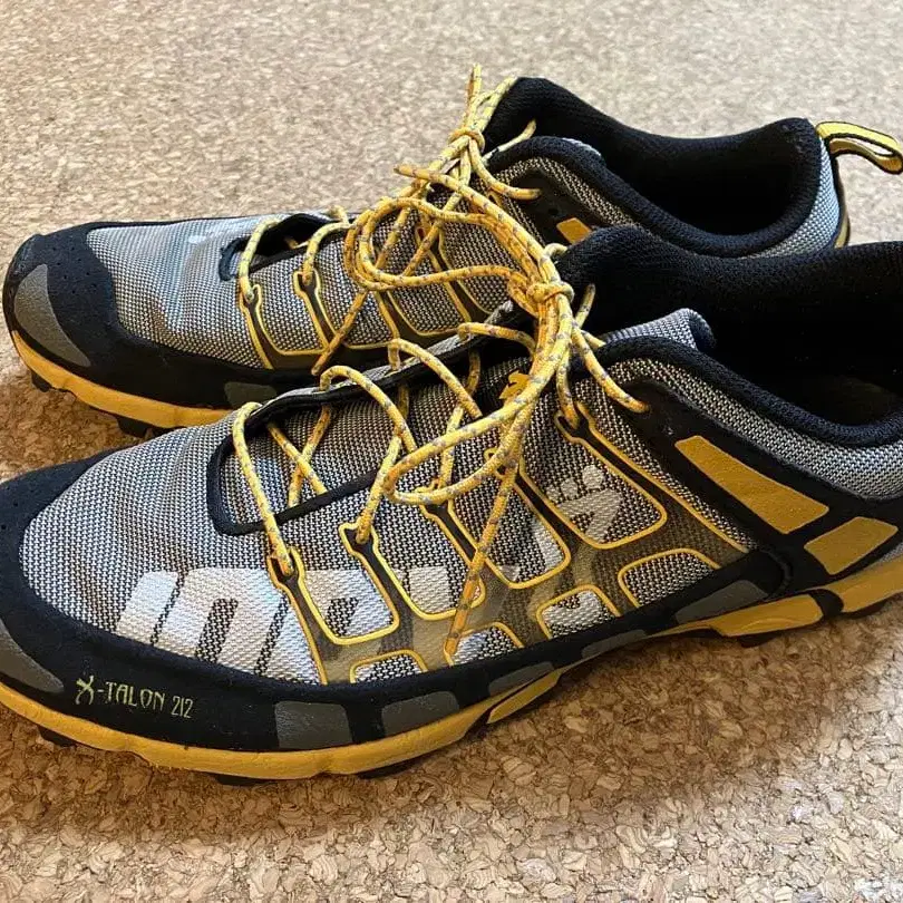 X-TALON 212 25.5cm 발바닥 감각을 잡기 쉽고 최근의 통굽 신발보다 좋지만 발볼이 좁아 사용을 포기하고 판매합니다. 모델명이 나타내듯, 중량은 212g으로 경량임에도 불구하고 어퍼는 튼튼하게 만들어졌습니다. 스웨이드 느낌의 인조 가죽 보강은 고급스러움과 강도를 양립하고 있습니다. 슈레이스는 트레일 러닝화로서는 드물게 둥근 끈을 채용했습니다. 둥근 끈은 늘어남도 적고 깔끔하게 조여지지만, 플랫 끈보다 부드러운 압박감을 줍니다. [inov-8] 중에서 가장 슬림한 핏인 PRECISION (프레시젼)을 채용했습니다. 빈틈없이 발에 피트되어 일체감이 있고 반응성이 좋아, 트레일에서 발이 흔들려도 침착하게 대처할 수 있습니다. 생크는 자연스럽고 부드러워, 발바닥의 미세한 움직임을 반영할 수 있는 META SHANK (메타 생크)입니다. [TRAILROC 255]와 비교하면, 드롭은 같지만 더 맨발에 가까운 느낌입니다. 특히 포어풋 부분의 유연성을 느낄 수 있습니다. 물론 그만큼 찔림도 느껴지므로, 노면 상황에 따라 약간의 장단점은 있습니다. 그리고 무엇보다 가장 큰 특징은 아웃솔입니다. [TRAILROC 255]의 두 배 높이는 될 법한 러그는 진흙탕이나 테크니컬한 트레일, 특히 내리막에서는 노면에 단단히 달라붙어 발군의 안정감을 발휘합니다. 러그에는 적당한 유연성도 있어 발의 부담도 경감시켜 줍니다. 러그 간격도 넓어 진흙이 잘 붙지 않고 경량화에도 한몫하고 있습니다.