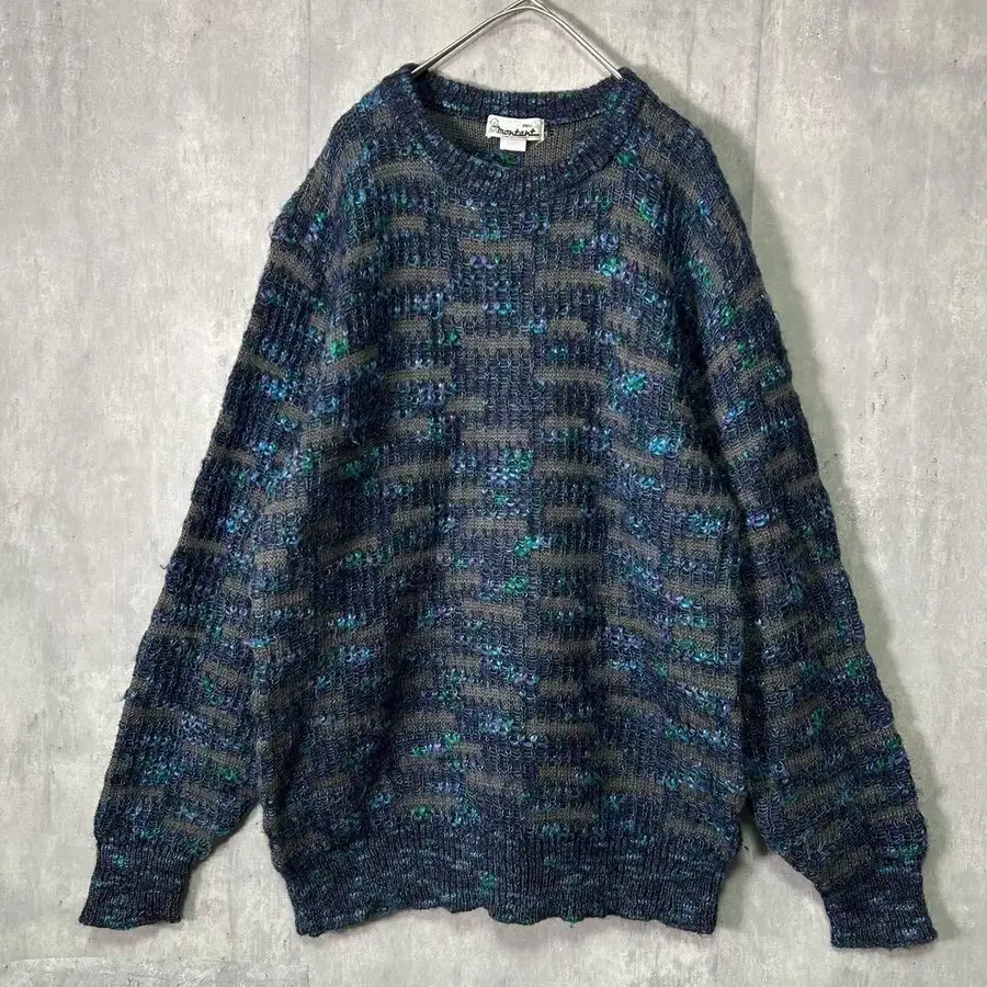 레트로 올 패턴 니트 스웨터 빅 루즈 파랑 보라색 프랑스