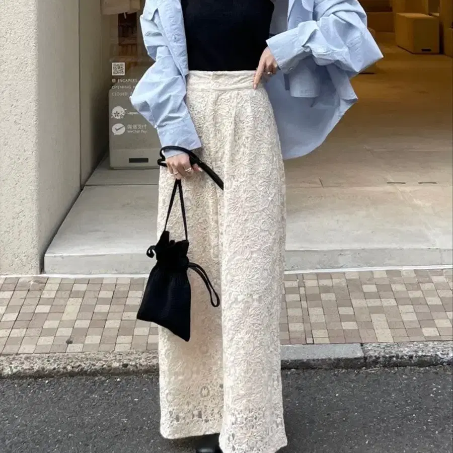 hinari / 플라워 레이스 턱 팬츠 FREE 아이보리 택 포함