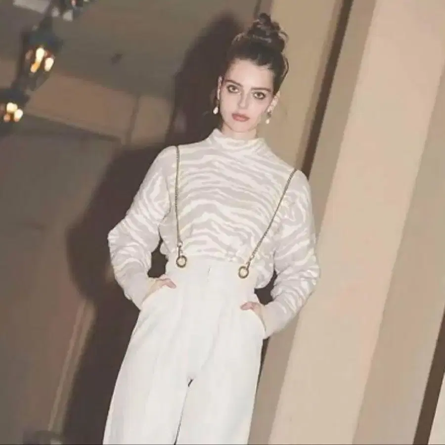 eimy istoire 제브라 자카드 숏 니트 풀오버