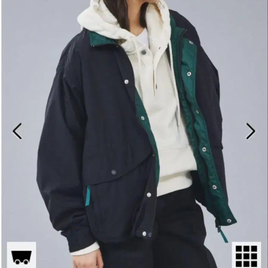 여유 있는 사이즈이지만, 짧게 설정된 기장은 하의를 가리지 않고 깔끔한 실루엣이 특징입니다.