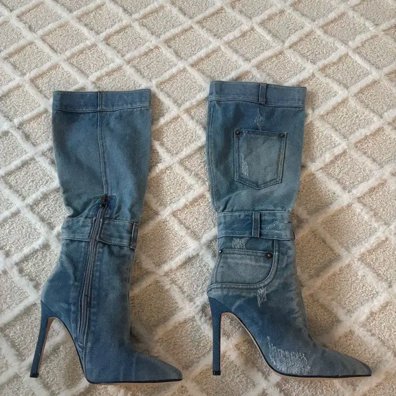 미사용 새상품 데님 블루 롱 부츠 포켓 부착