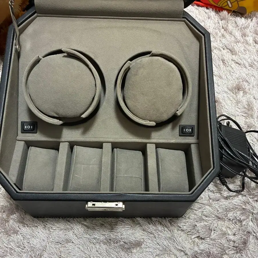 회전식 그레이 시계 케이스 6개 수납 AC 어댑터 포함