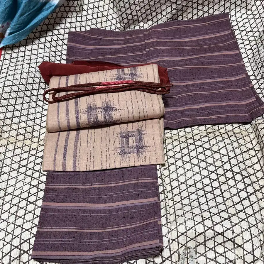 4점 (기모노, 오비, 오비 장식 천, 허리띠) 세트
