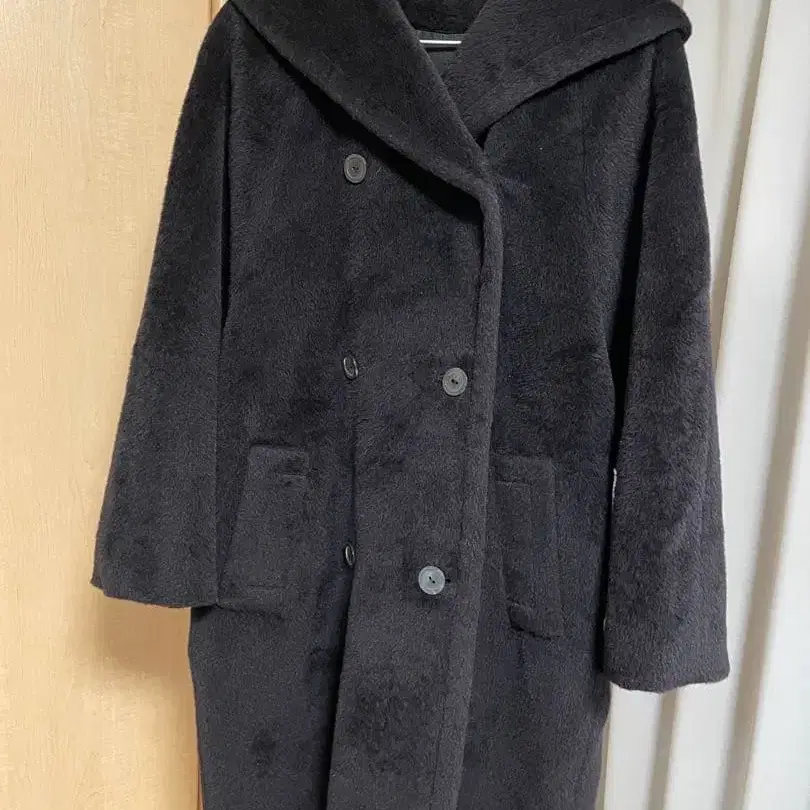 아쿠아 스큐텀 블랙 후드 부착 더블 버튼 코트