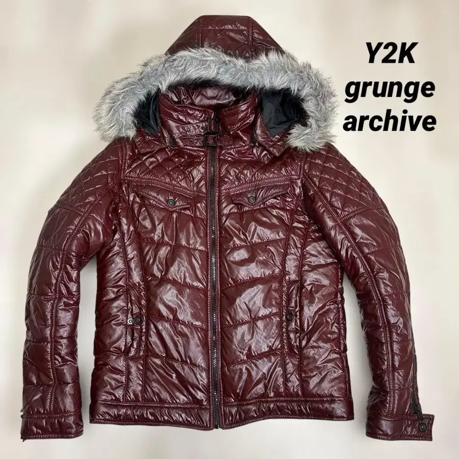 Y2K 패딩 자켓 LL 그런지 시크 스타일 기믹 네오 보르도 광택