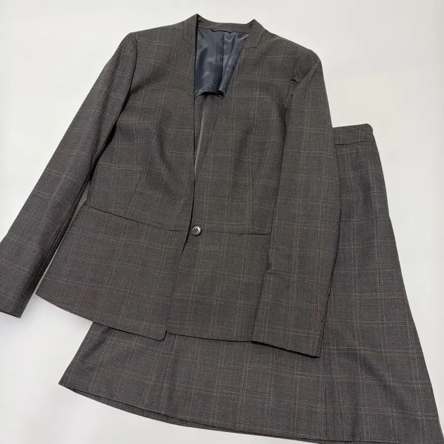 컨디션 최상 엠프리미어 자켓 스커트 수트 세트 36 블랙 베이지