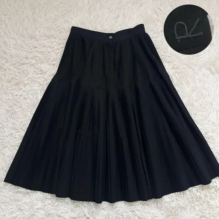 새상품급 45R 덤프 아코디언 플리츠 스커트 면 100% 블랙 L 사이즈