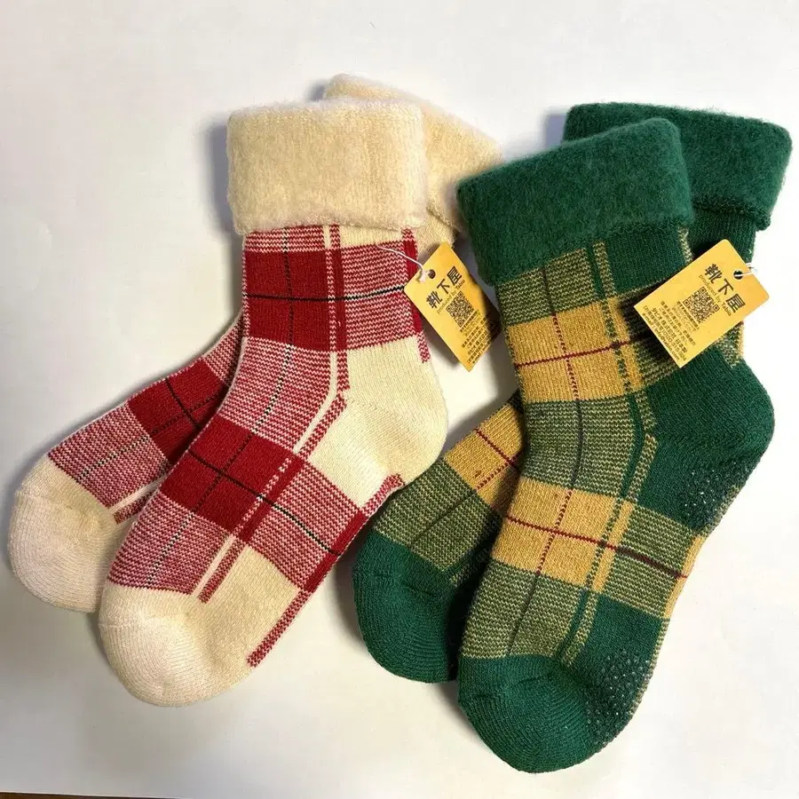 타비오 타탄 체크 속기모 룸삭스 따뜻한 양말