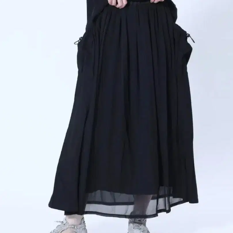 [미사용 새상품] LASUD 포켓 디자인 쉬폰 스커트 블랙