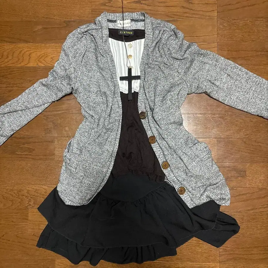 • 헤이세이 갸루 Y2K 그런지 페어리 모리걸 후드 부착 가디건