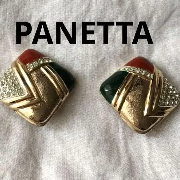 빈티지 PANETTA 큐빅 골드 귀찌 에나멜