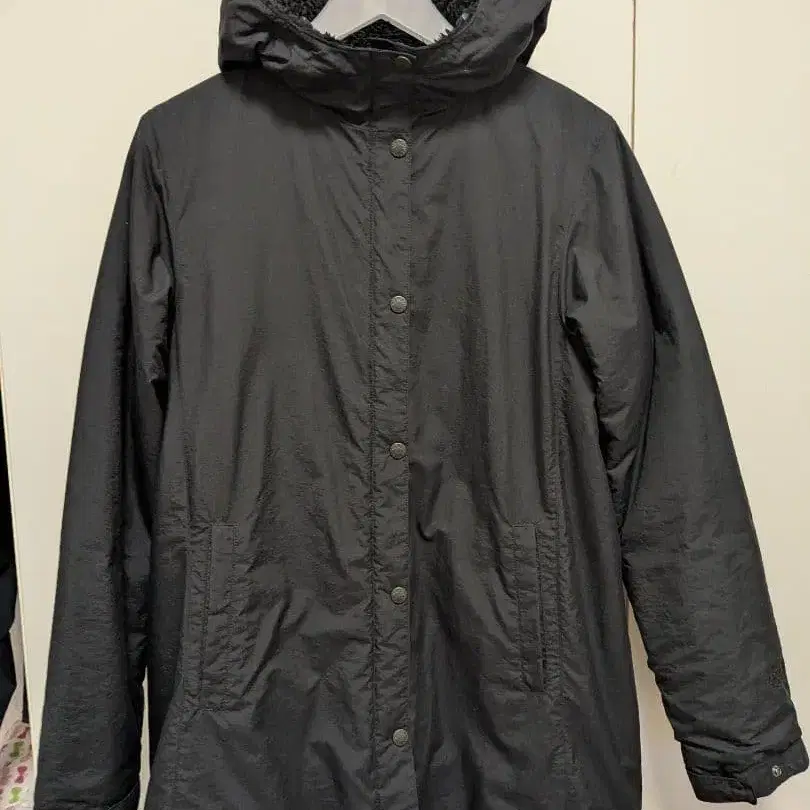 THE NORTH FACE 후드 부착 롱 코트 블랙