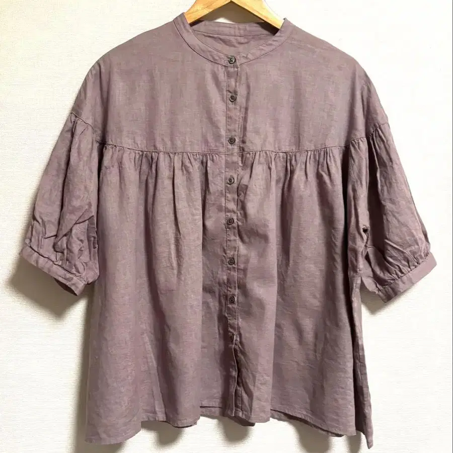 린넨과 면 혼합 소재로, 가볍고 넉넉한 플레어 실루엣의 반팔 셔츠입니다.