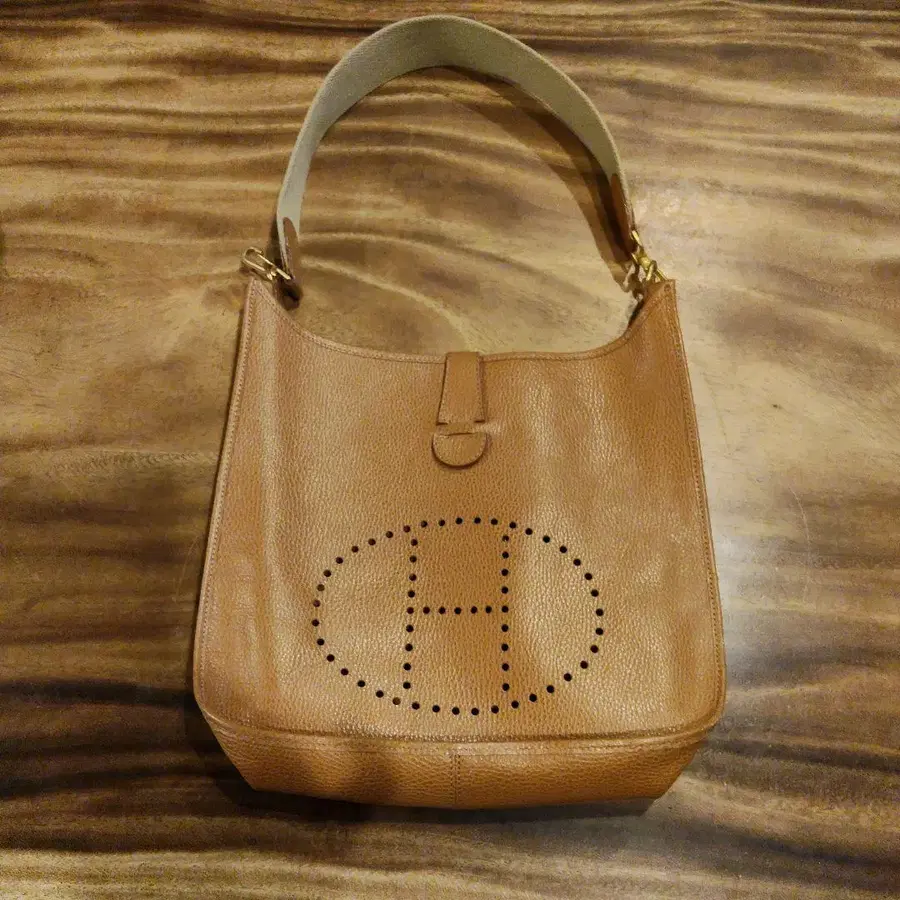 H 뱅킹 H형 컷팅 H 로고 마크 브라운 가죽 숄더백