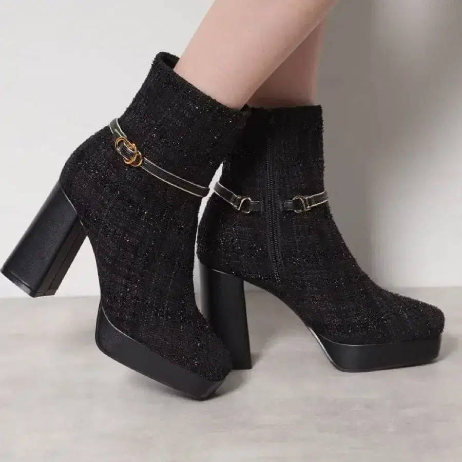ESPERANZA 숏부츠 스퀘어 트위드 숏부츠 L 사이즈
