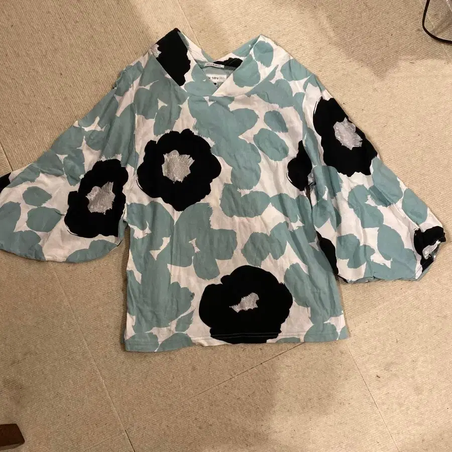 SOU SOU 꽃무늬 셔츠 L 사이즈 스카이블루 블랙
