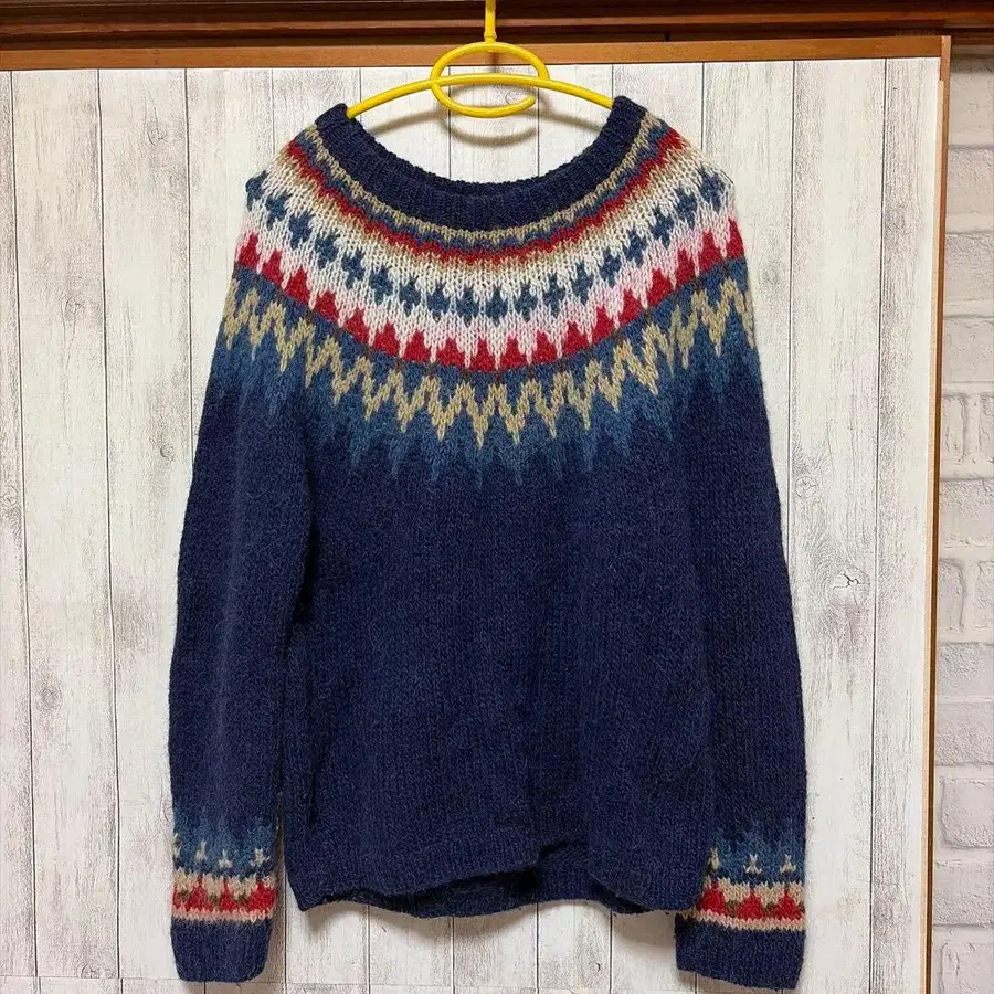 BEAMS BOY 노르딕 무늬 스웨터 긴팔 네이비