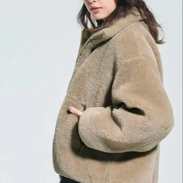 coca 인조 모피 스탠드 카라 블루종 베이지 M