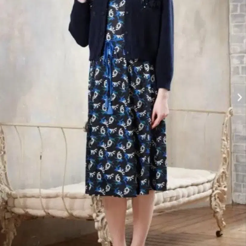 2025AW 슈퍼 뷰티 블루 계열 꽃무늬 프린트 원피스 44