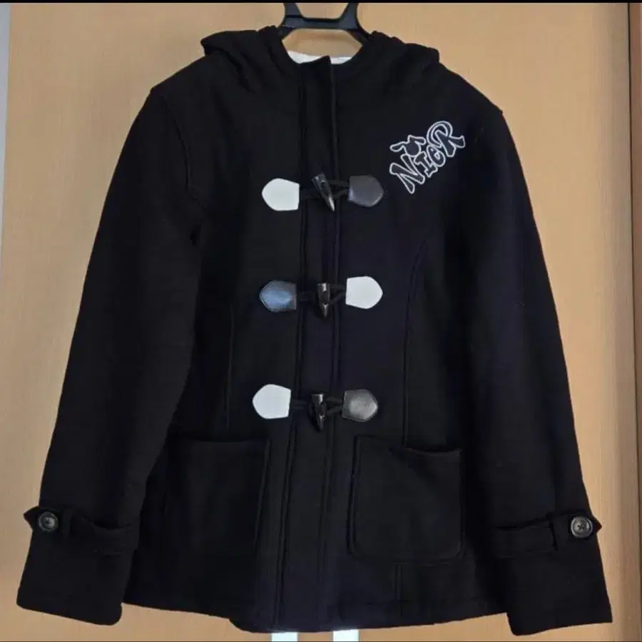 블랙 더플 코트 후드 부착