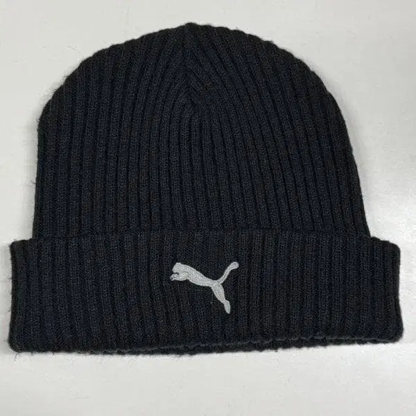 PUMA 리브 니트 모자 자수 로고 원 포인트 블랙 비니 푸마
