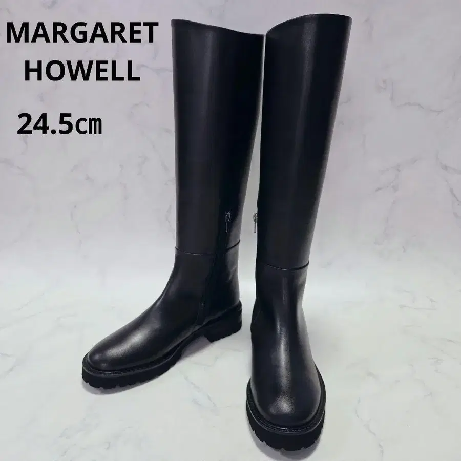 컨디션 최상 마가렛호웰 롱 부츠 와이드 힐 라운드토 가죽
